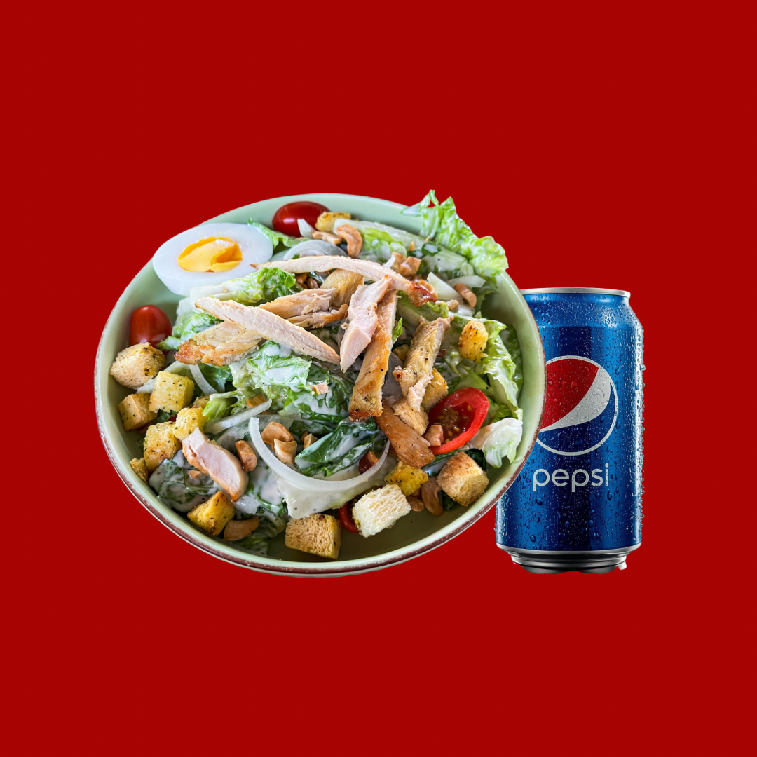 Caesar Dressing, Parmesan Cheese, Egg and Chicken.