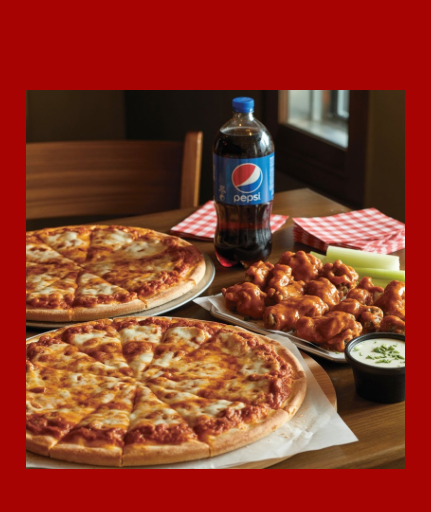 Sunday: 2 Lg Cheese Pizza, 20 Wings & 2 ltr Soda $39.95