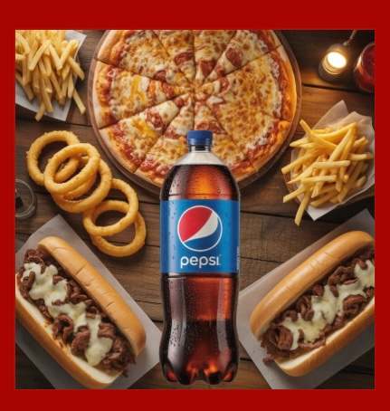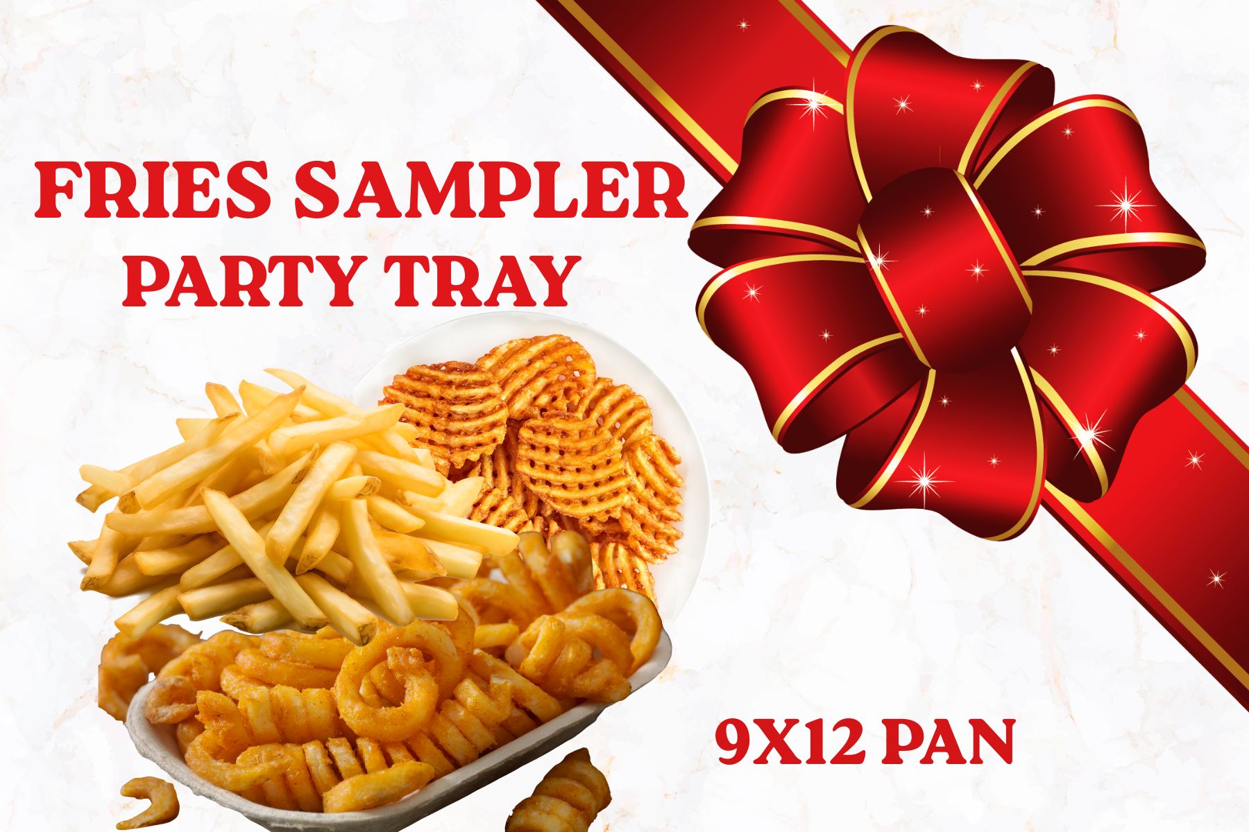 French Fries, Cajun Fries, Mozzarella Sticks (3), Onions (3), Broccoli Bites (2), Mini Tacos(3), Ranch and Marinara.